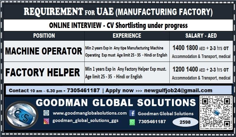 REQUIREMENT - UAE - MANUFACTURING FACTORY