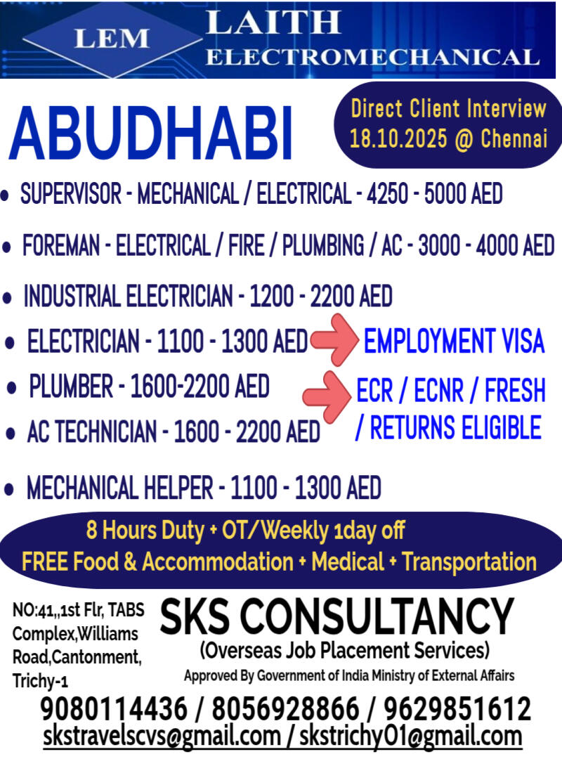 URGENT REQUIREMENT FOR UAE - ABUDHABI