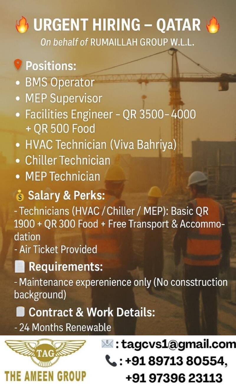 HIRING : MAINTENANCE & MEP POSITIONS – QATAR