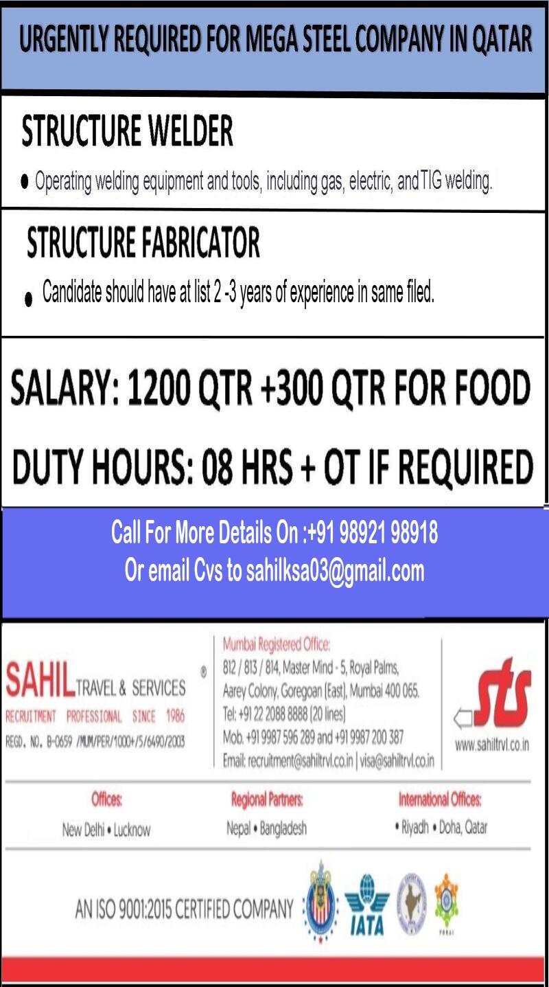 URGENTLY RQUIRED FOR MEGA STEEL COMPANY IN QATAR