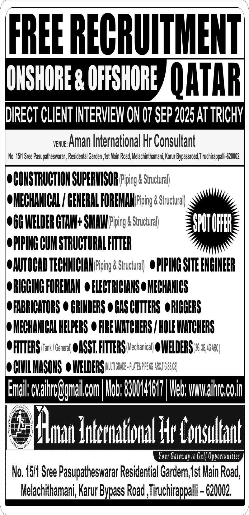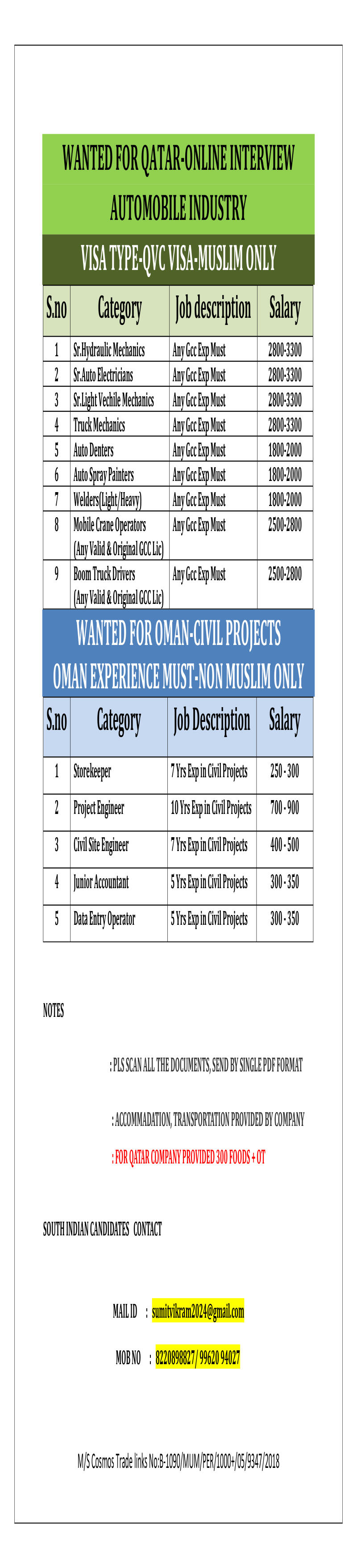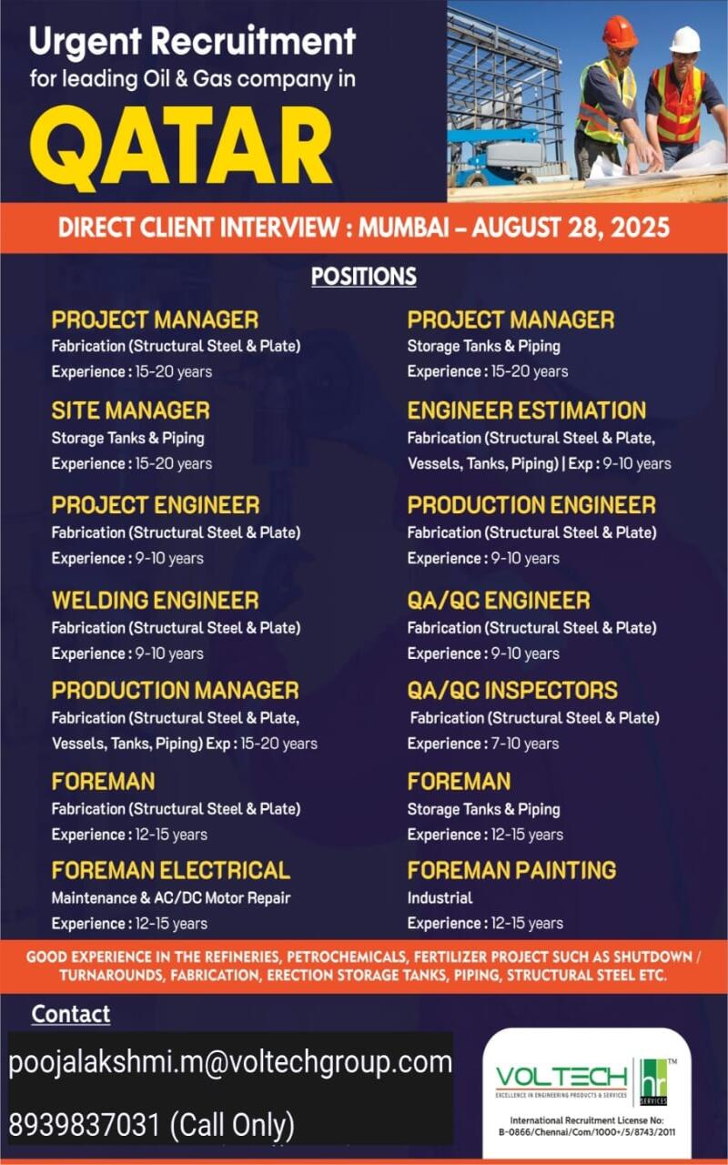 Immediate Requirement - Qatar - Direct Interview @Mumbai