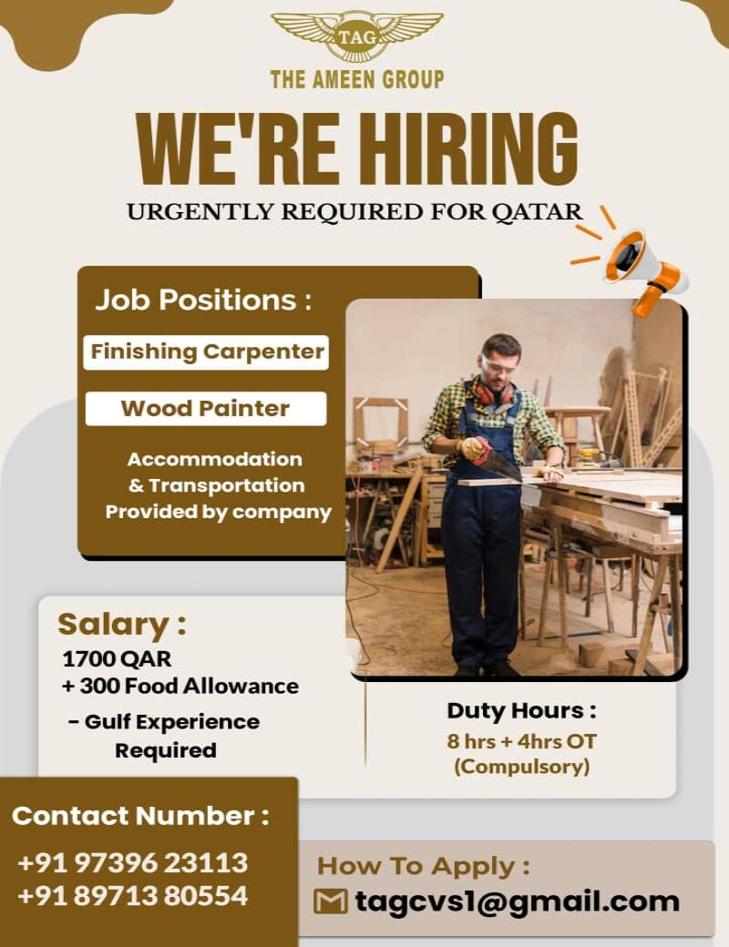 Finishing Carpenter & Wood Painter – Qatar (Urgent Requirement)