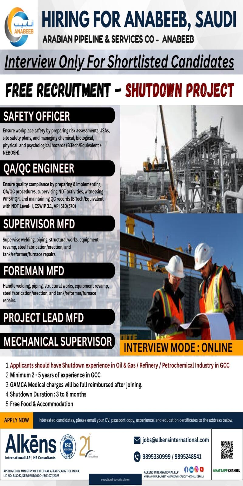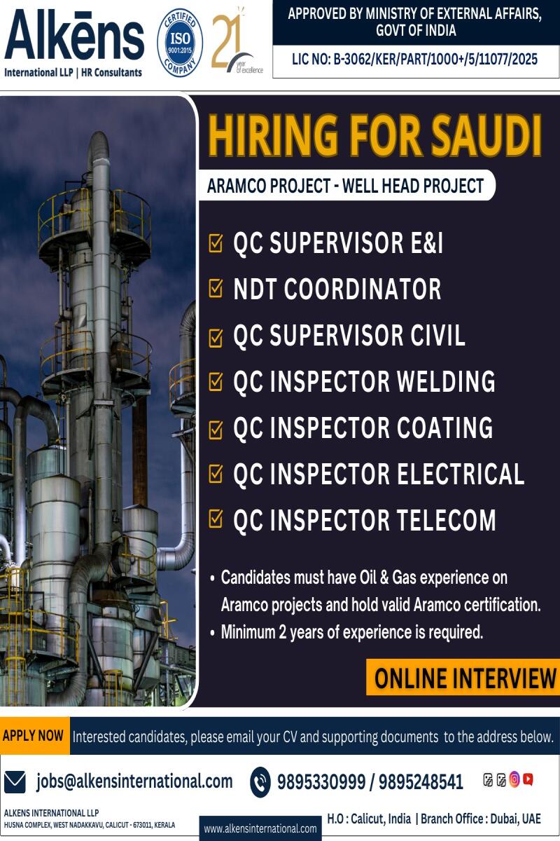 URGENTLY HIRING FOR ARAMCO PROJECTS