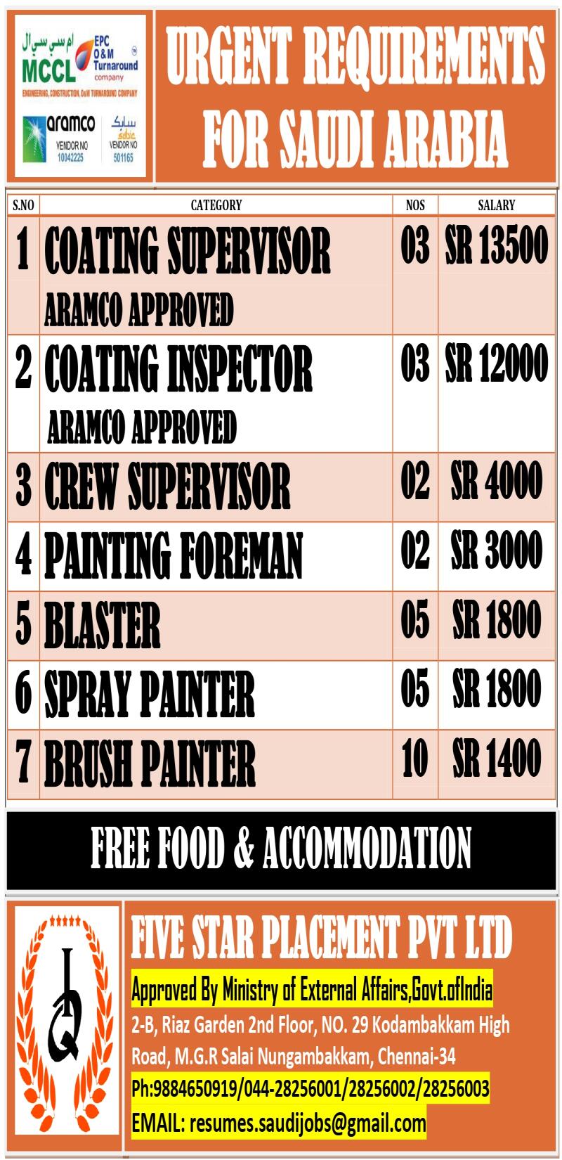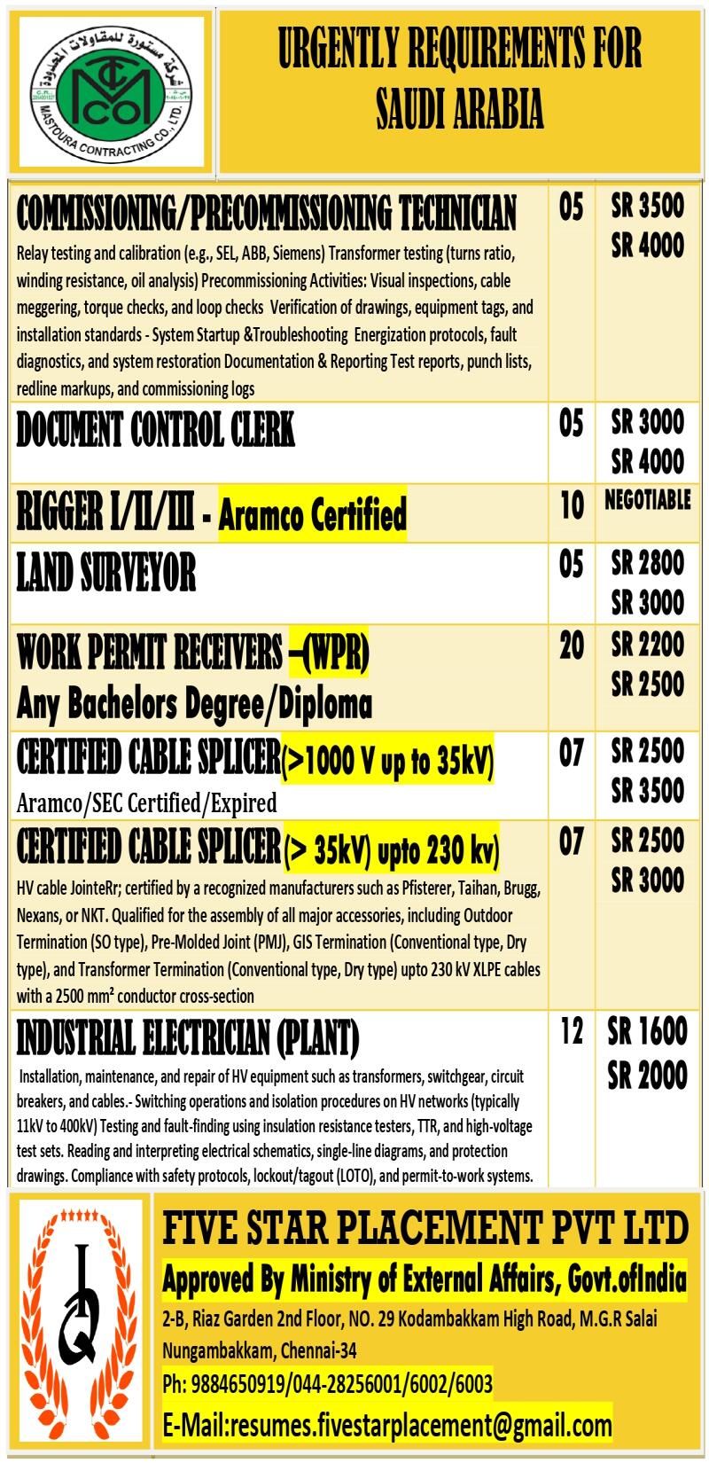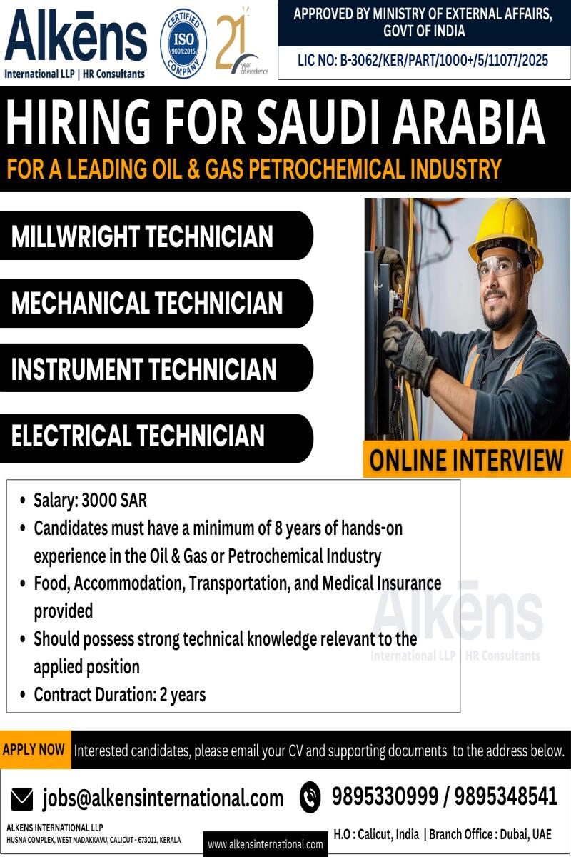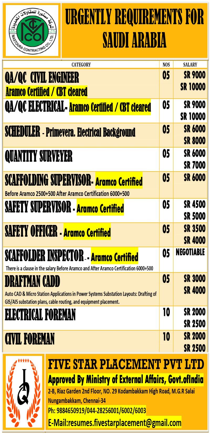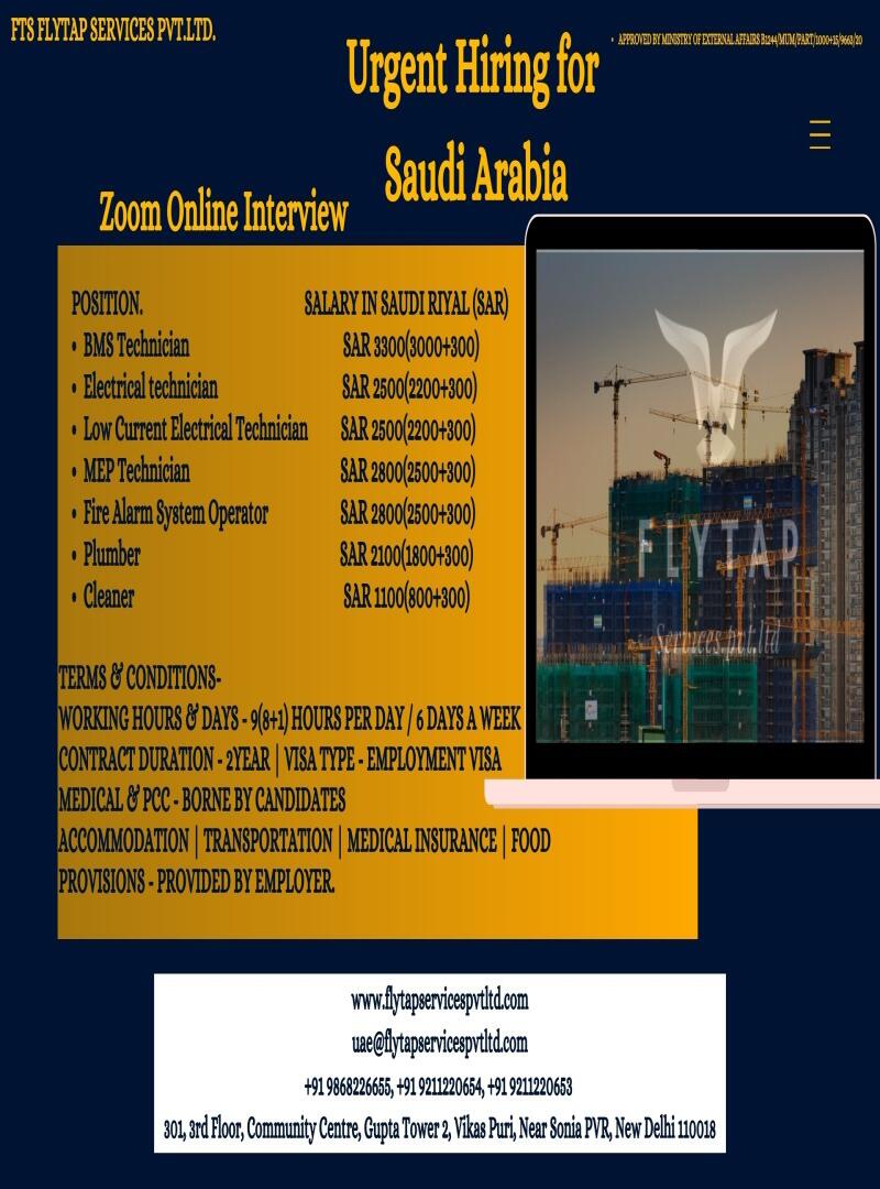 Urgent Hiring for Saudi Arabia
