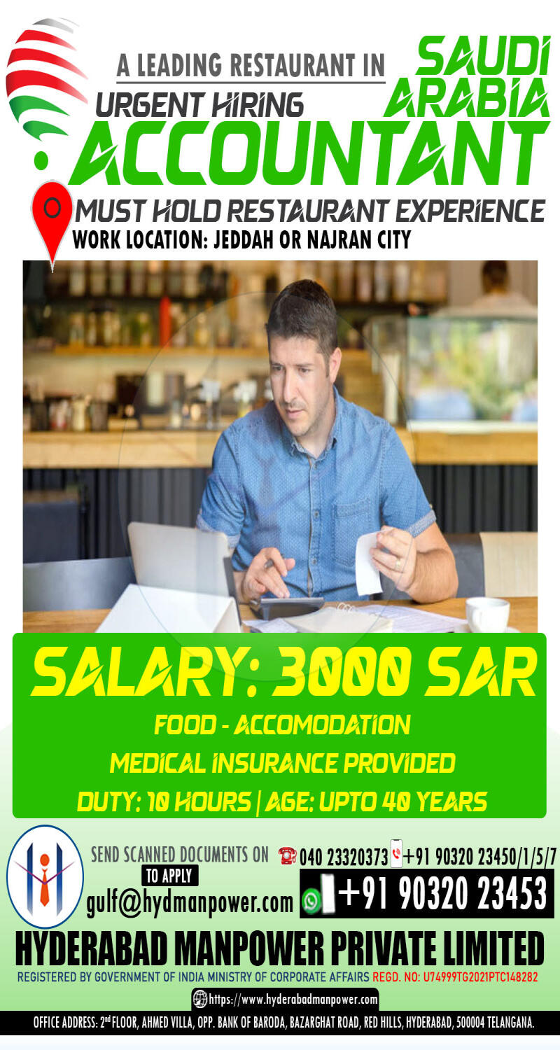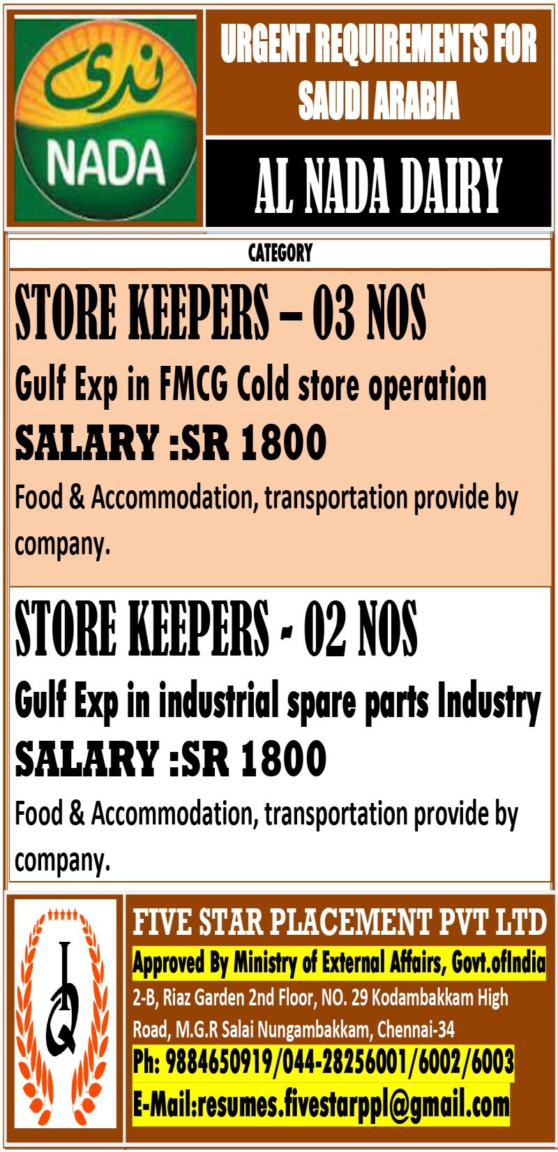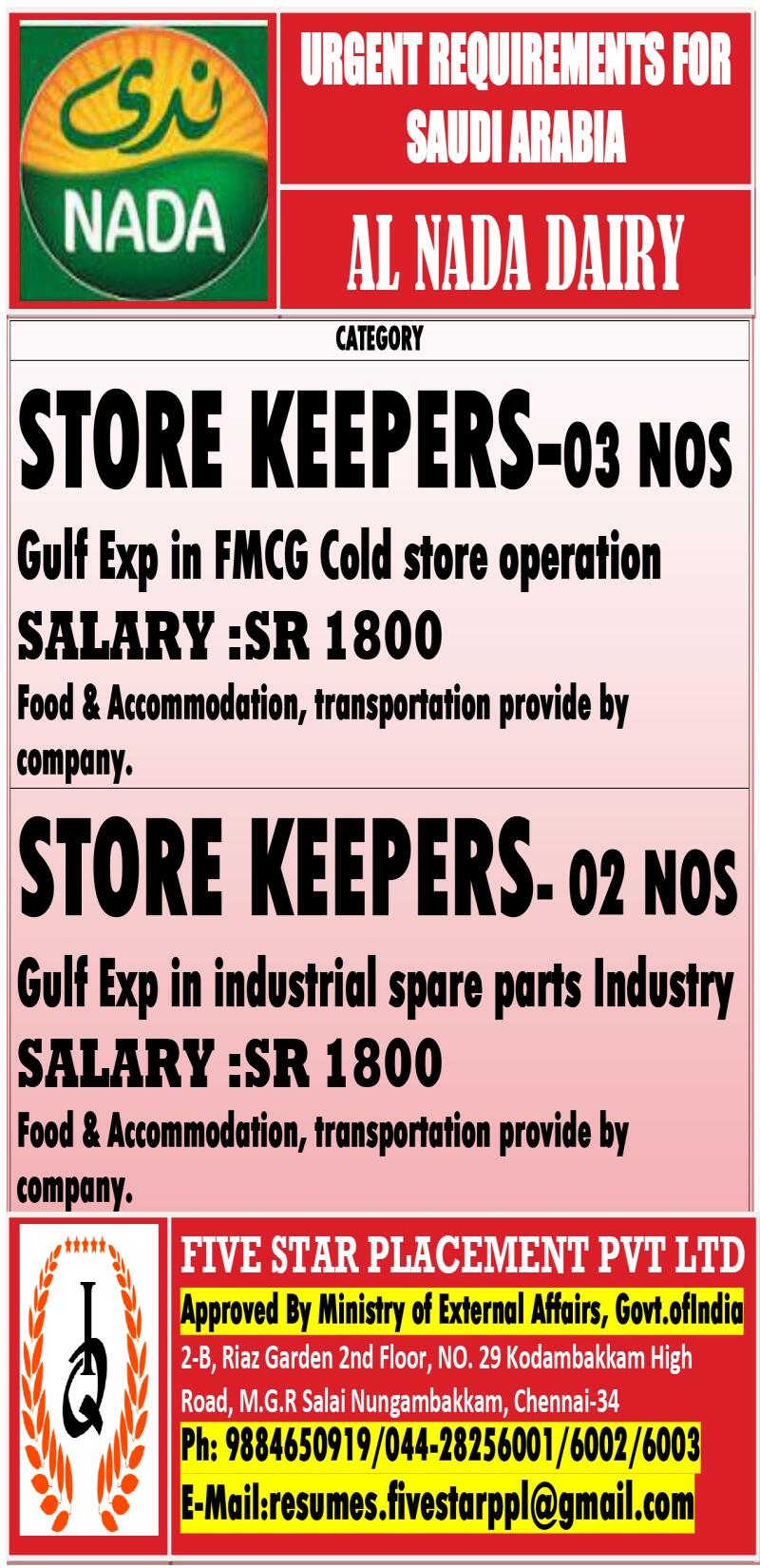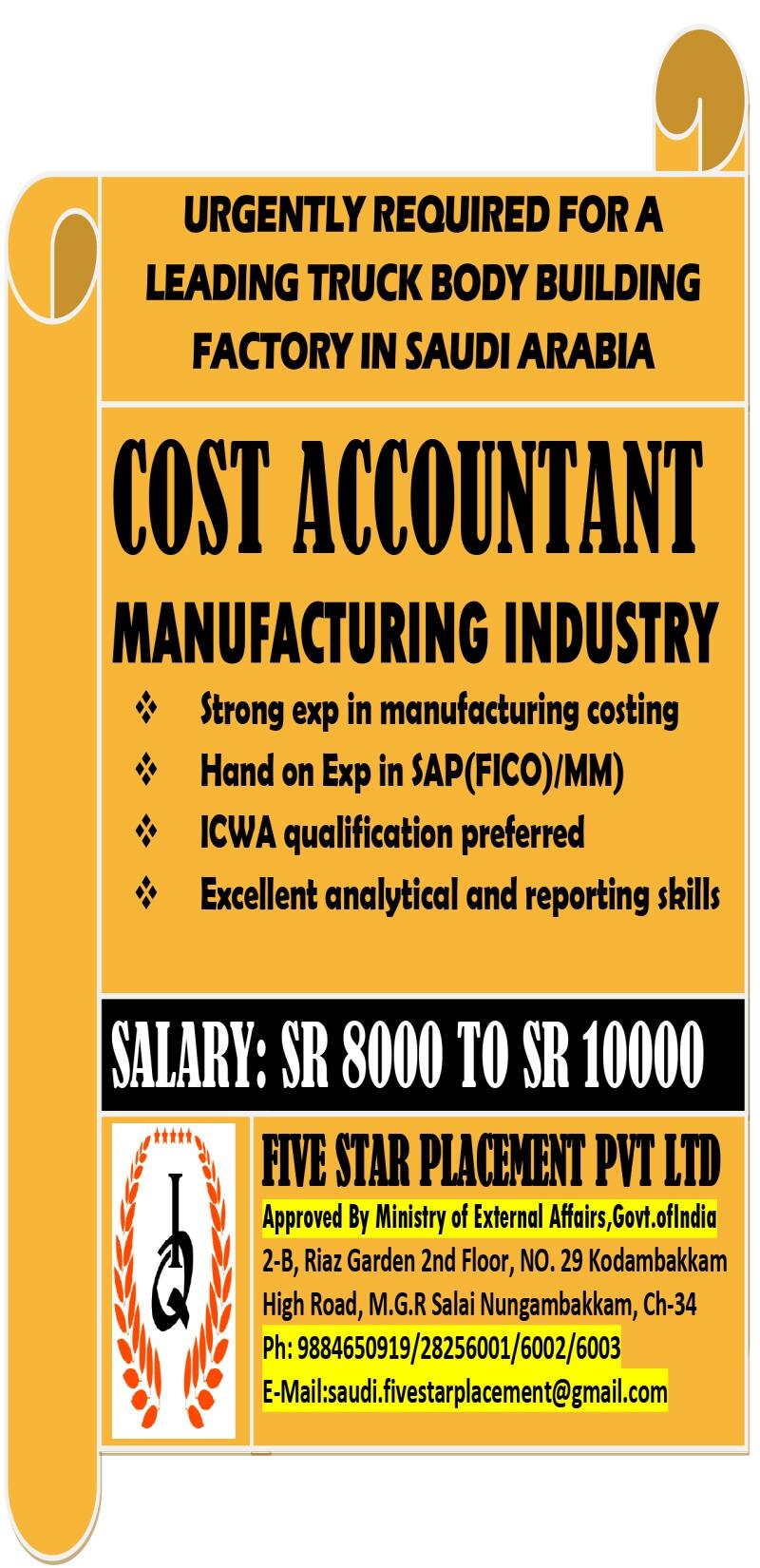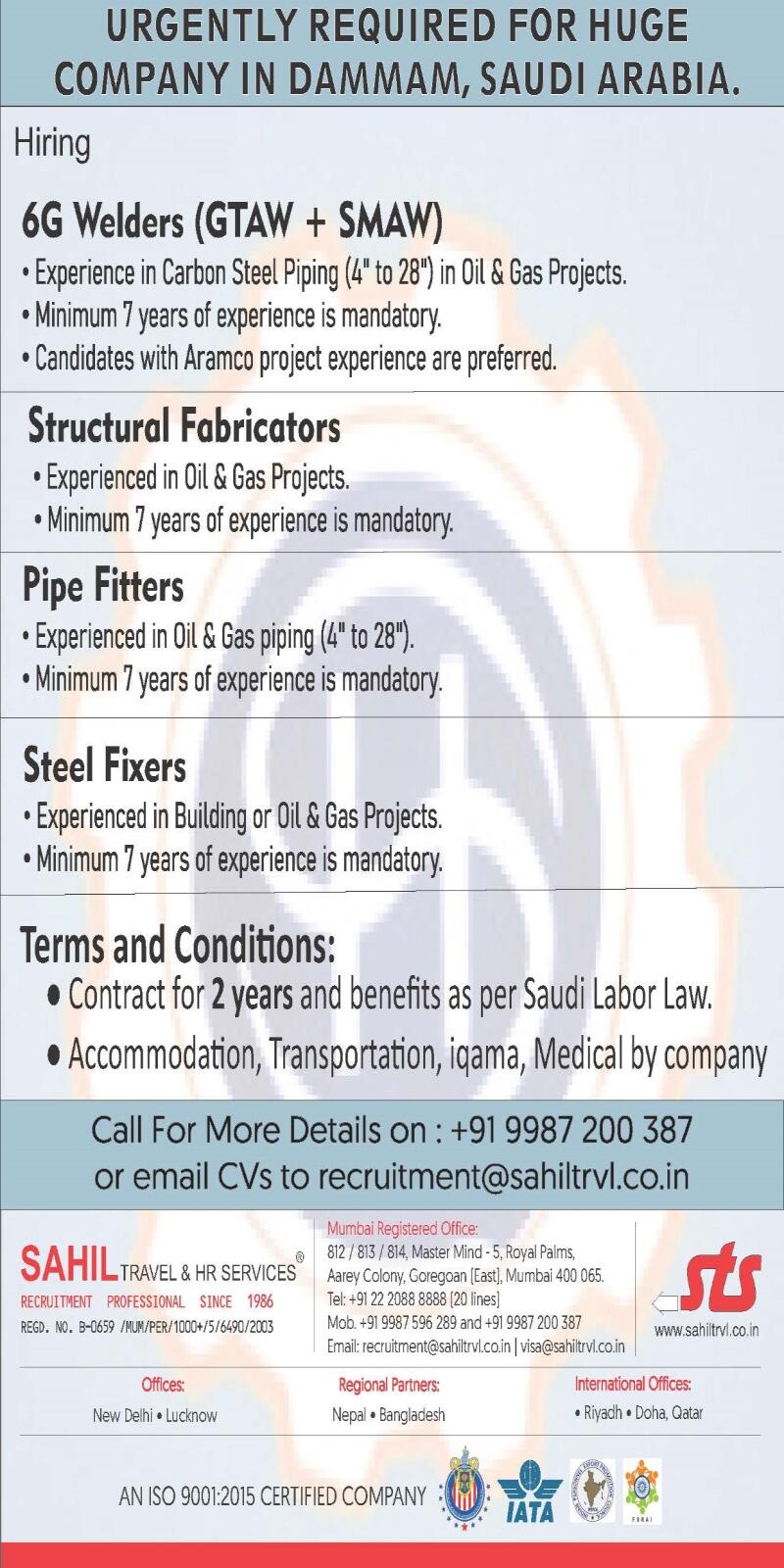 URGENTLY REQUIRED FOR HUGE COMPANY IN DAMMAN ,SAUDI ARABIA