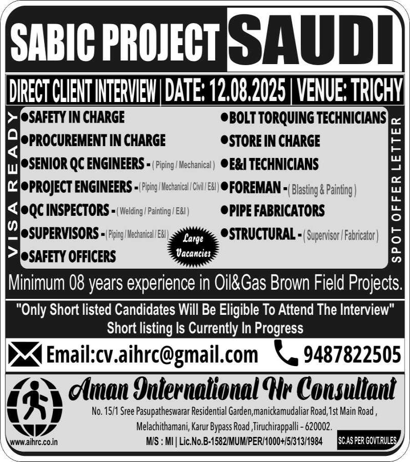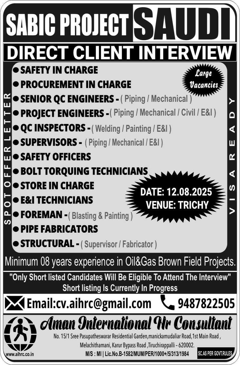 SABIC PROJECT | DIRECT CLIENT INTERVIEW @ TRICHY