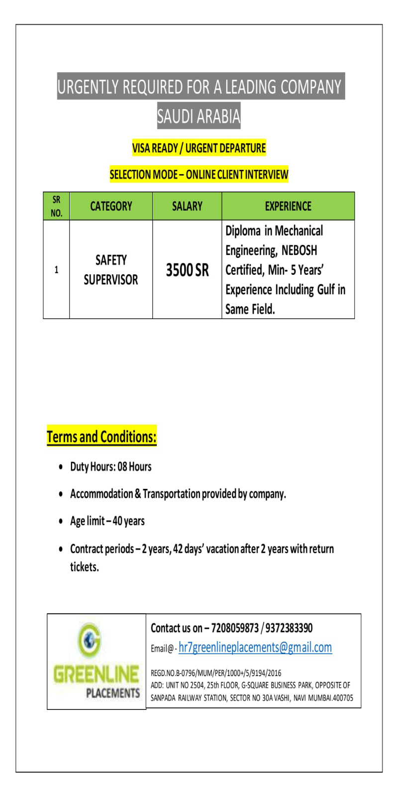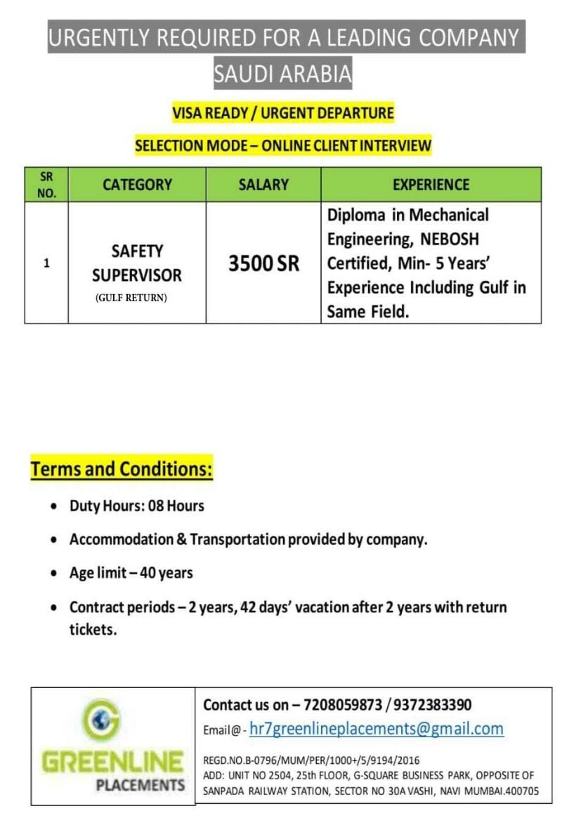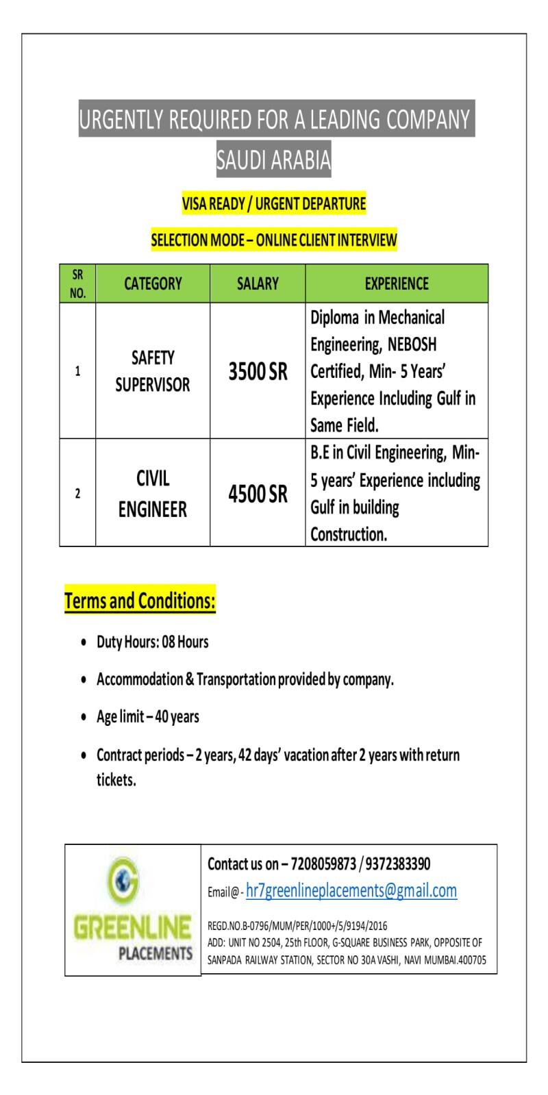 URGENT REQUIREMENT FOR SAUDI ARABIA