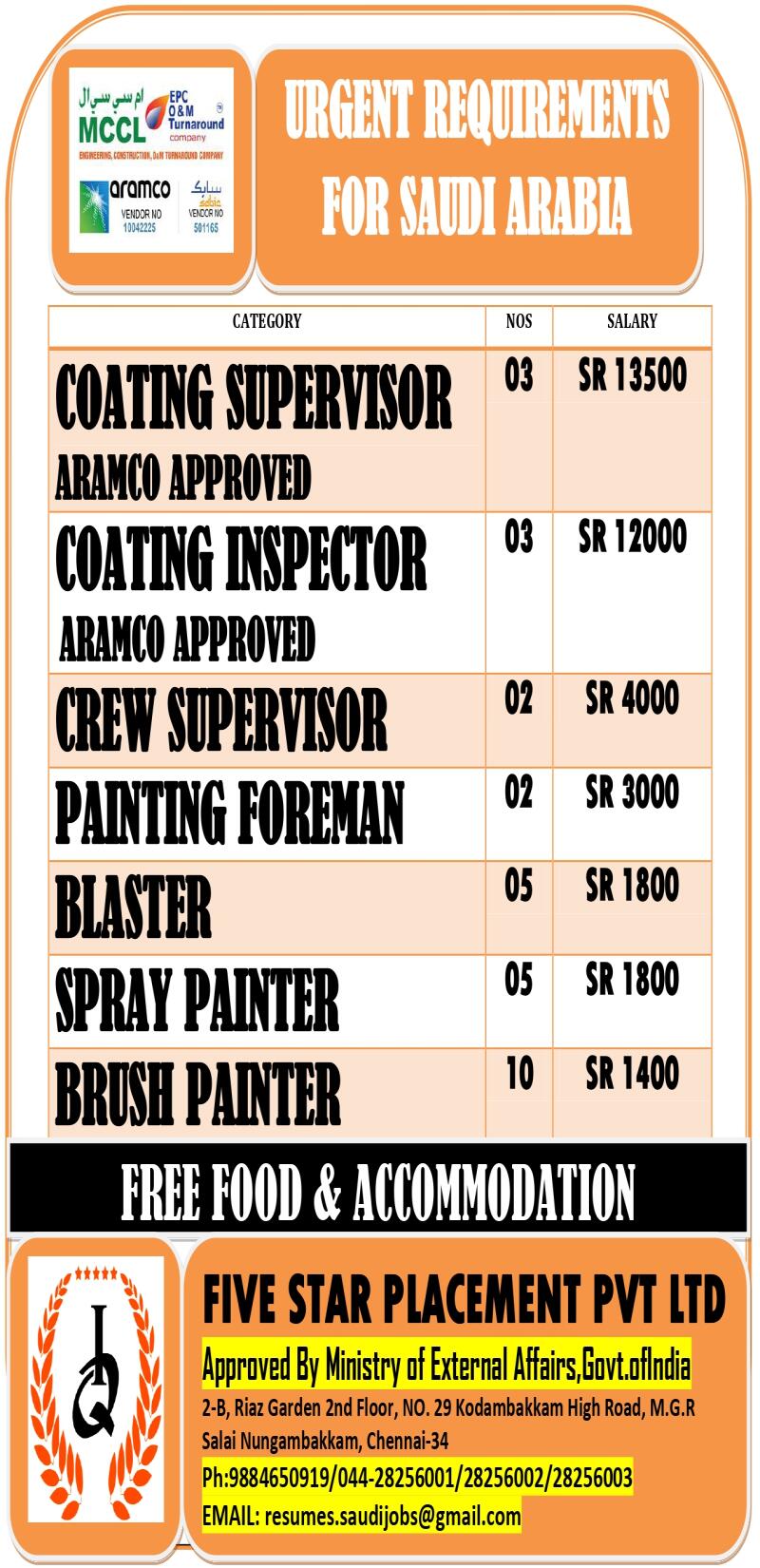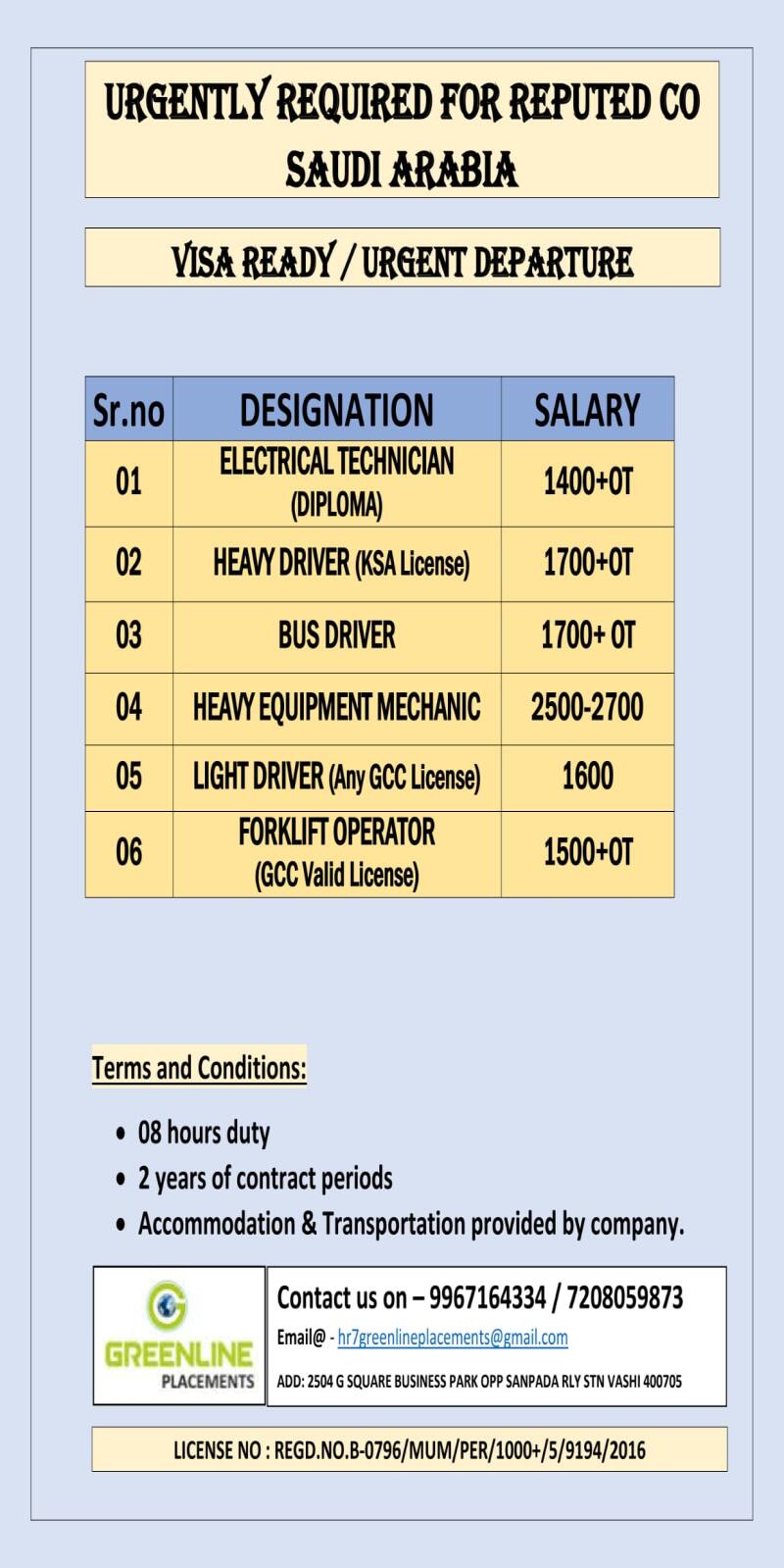 URGENTLY REQUIRED FOR SAUDI ARABIA