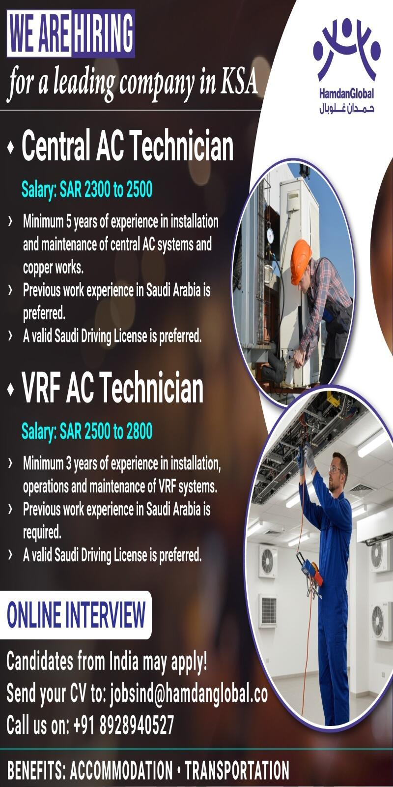 We are hiring for leading company in KSA