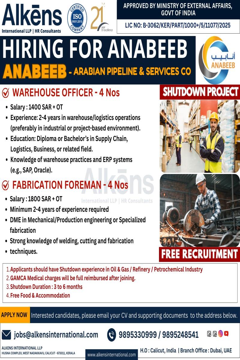 HIRING FOR ANABEEB, SAUDI